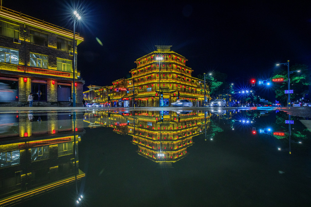 古城的夜晚比起白天的喧哗更是多了一丝妩媚,宛如一幅现代水墨画,人在画中游,一步一景、景随身行,让前来观赏夜景的游人陶醉其中,妙不可言。