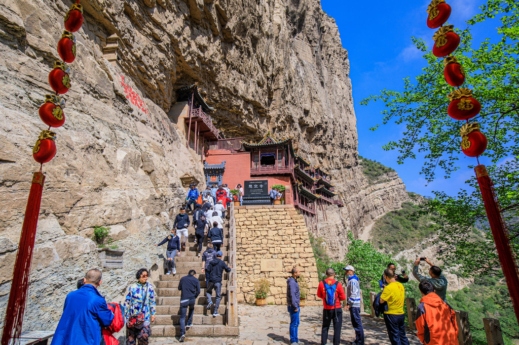 最好的当然还是要留到最后,连日的阴雨终于也在最后一天放晴了,趁着好天气,一行人等终于要去本次行程的核心景点,恒山悬空寺打卡了。