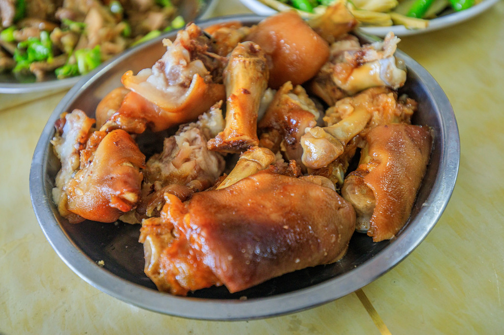 据说这是一家远近皆知的当地特色美食餐馆,餐厅选用了当地的菌类食材加上面皮、豆腐、碎肉等一起烩制而成,搭配新鲜可口的拌菜、猪肘肉、猪脚肉等,这种吃法在当地颇受好评,大家如果有机会前往千佛岭景区的话可以去尝试一下,相当接地气的一餐。