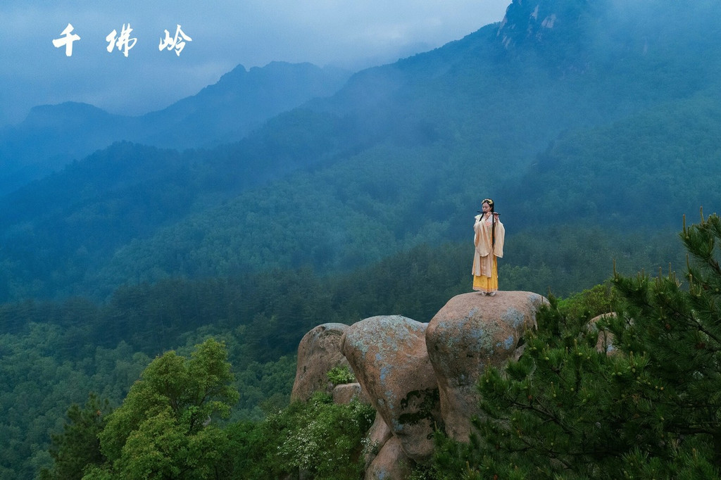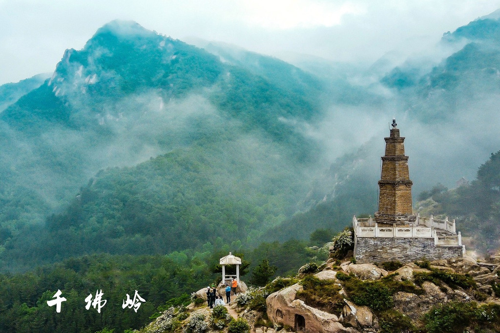 阴雨天云飘峰际,雾绕千岭,景象尤美。放眼望去,千佛岭南峰,酷似华山仙人掌,连绵起伏的鸡冠岩,又像衡山祝融峰;西面的尖石梁则如泰山玉皇顶;回身北望,直指天际的孙膑寨、庞涓岭,在云雾中忽隐忽现。