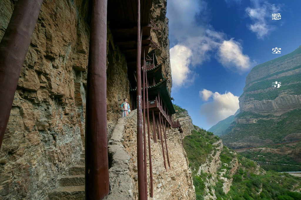 悬空寺位于浑源县恒山金龙峡西侧翠屏峰的峭壁间,当地素有“悬空寺,半天高,三根马尾空中吊”的俚语,以如临深渊的险峻而著称。