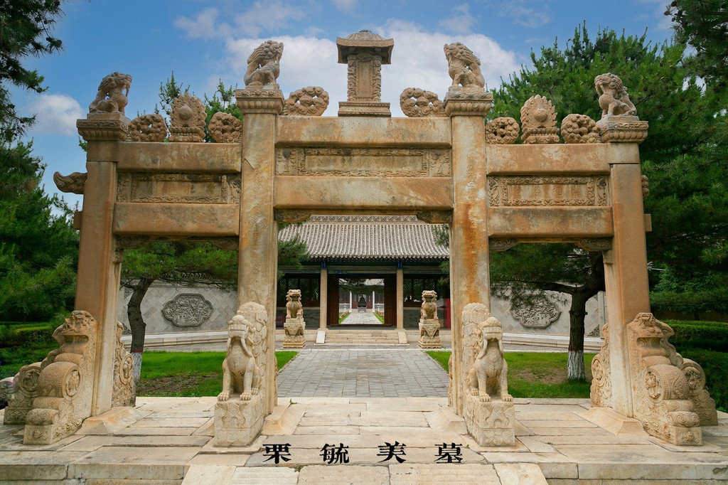 如今,走进栗毓美墓,不仅有汉白玉牌坊,在墓道两侧,还对称地排列着五组十尊石像生,有羊、虎、马、武将、文臣,高大威严、气势磅礴。