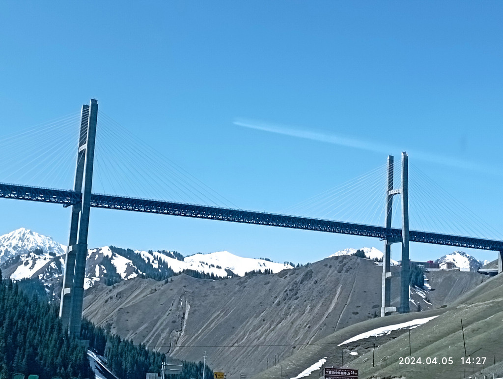 从赛里木湖往霍尔果斯口岸的路上,看到的果子沟大桥,也是吸引了我们留足观看。