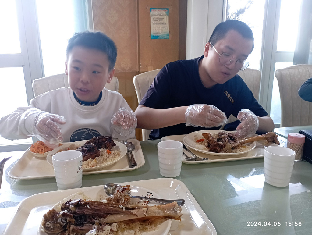 在路上,大家都想在临走前吃吃手抓饭解个馋。在地图上找了好几家店,打电话过去联系发现都说已经卖完了,车上大家都有些失落。好不容易联系到一家,表达了我们远道而来就为了品尝下的心情,老板娘考虑了一番答应给我们留几份等我们过去。车上的气氛也在这柳暗花明一刻轰然热闹起来,开了一天的车,终于有了好的念想了。终于到达博乐壹号抓饭馆【205县道机关农场向南200米】的时候,算是这次新疆之行落幕前的小高潮了。因为提前电话联系了,我们到了,老板娘就把几份手抓饭一股脑端上来了。饥肠辘辘的时候碰到美食真是莫大享受,不过就是米饭拌的羊油还是有些太多了,和平日饮食习惯不一样,肠胃还不是一下子很适应,虽然吃得停不下来,只能狂喝水,来解腻,估计喝些酒应该也好些。意犹未尽下又多买了几份抓饭,让老板娘帮忙打包了,也算是带了些新疆特产回去。