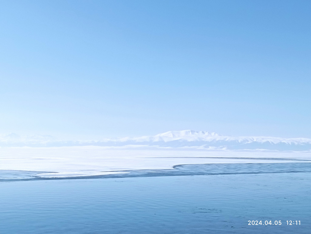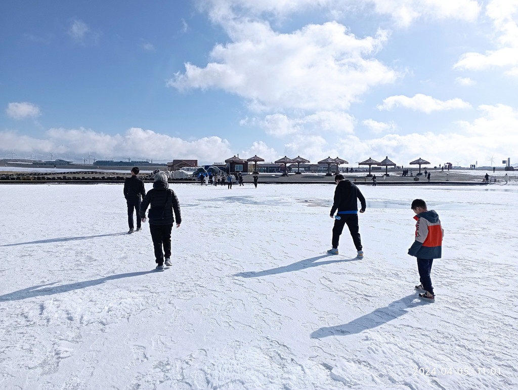 从博乐去赛里木湖估计是最近的吧,开车一小时左右就已经到景区游客中心了,游客中心停满了车,大厅里面也是有不少排队买票的游客。买票的时候,售票员看小朋友身高刚好一米三左右,也就宽限免了儿童票,这让自己一下子对这儿好感倍增。景区看到还有个规定,在这儿登记结婚,还可以终身免门票,和外甥打趣道,在这儿找个新疆美女,解决个人问题好了,以后可以经常免票来呢。景区可以自驾,我们是从东门进,逆时针绕行到南门出。赛里木湖的海拔还是挺高的,因此大部分地方还有着厚厚的积雪覆盖。