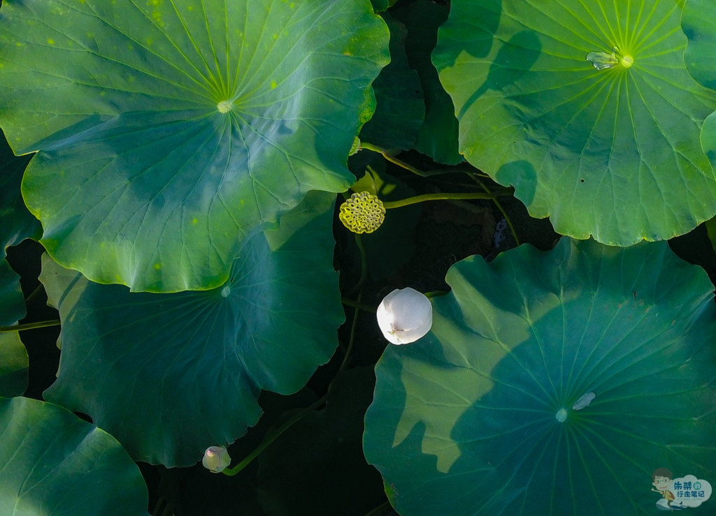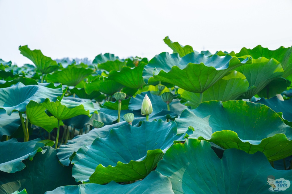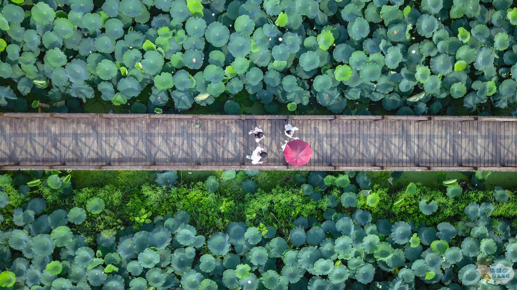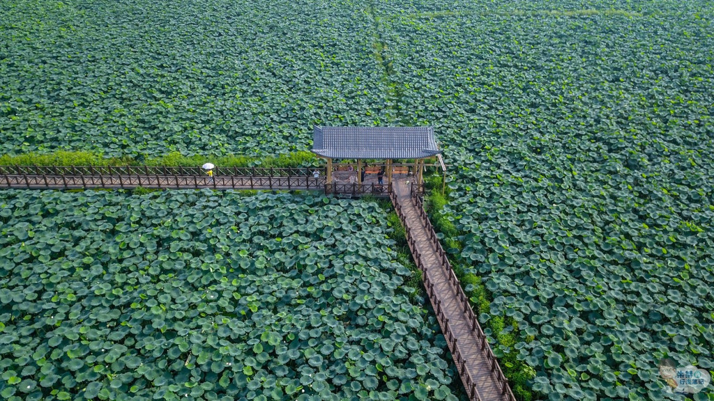 沿着莲藕种植基地的木质观景栈道,走入荷塘深处,将自己置身于万亩绿意之中,只见连片的荷叶,直漫天边,仿佛一片无边的荷海,在微风中绿波荡漾、绵绵不绝,给人一种“酣红腻绿三千顷”、“香莲碧水动风凉”之感。不同于 杭州 西湖的“映日荷花别样红”,这里的荷花多为白色,玉洁冰清,玉立婷婷,或含苞待放,或芬芳吐蕊,引得无数游客纷沓而至,或美拍或创作,只为记录下这难得一见的唯美景象。