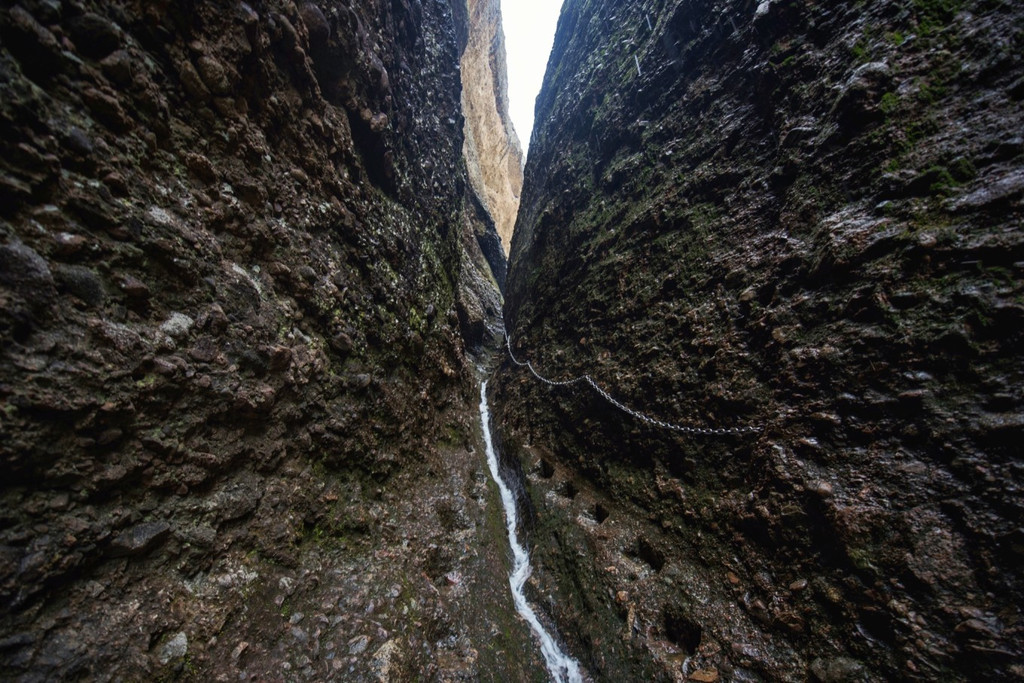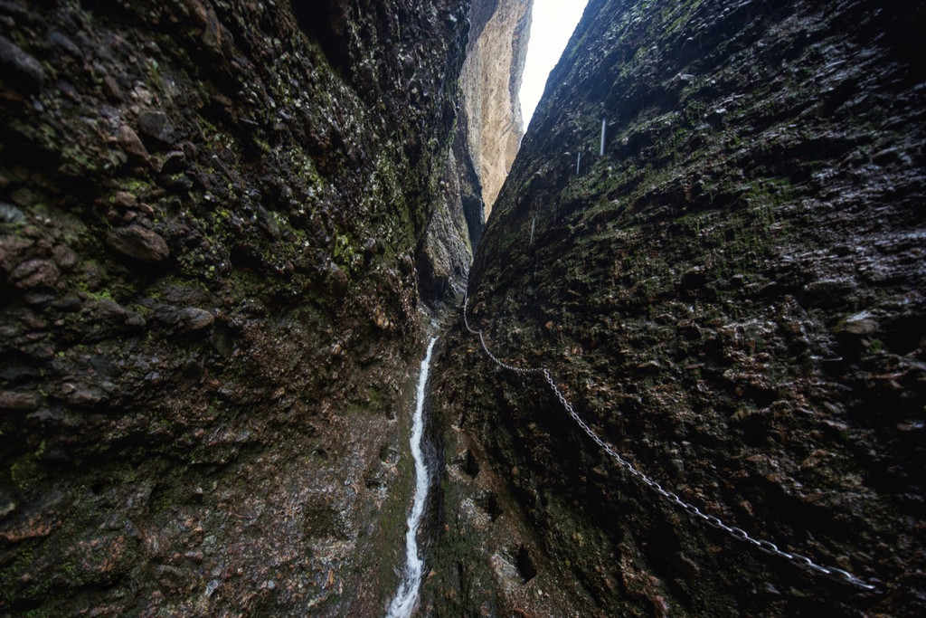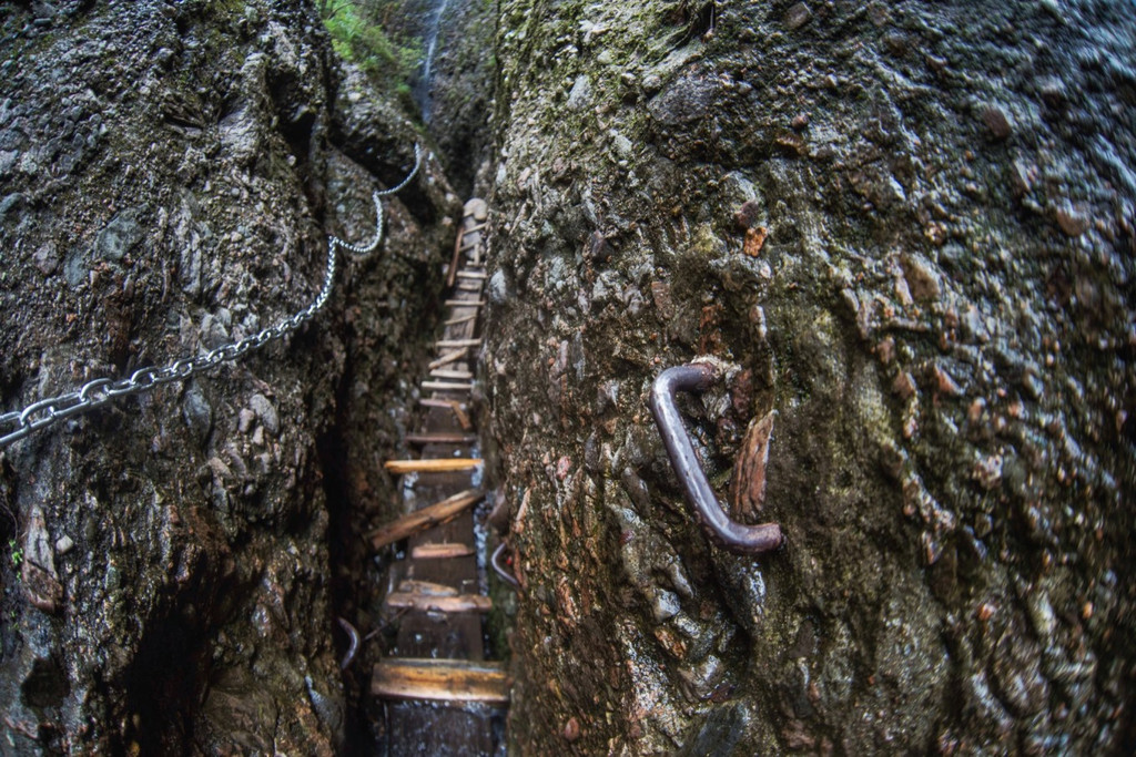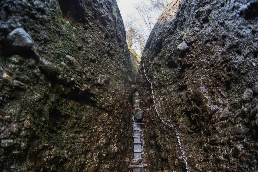 除了众多的历史遗迹,以及丰富的史实传说,在皖西大裂谷,你还会感觉到与其他的裂谷不一样的地方,这里的每一段路程都极具特色,有很多地方都窄小非常,根本容不得人们并排行走,甚至就是一个人都要侧身才能通过,而且攀爬过程中甚至无处下脚,只能凭借岩壁上的铁链或者那些人工开凿的窄小的脚室勉强借力,加上头顶上是危岩林立、峭壁千刃,因此也给人极其惊险刺激之感。当然,裂谷内有些地方也是视野开阔,风景独好的,不仅生态环境优良,而且奇石异洞、飞瀑流泉、茂林修竹、碧潭幽壑一应俱全,美不胜收,尤其当你历经“磨难”经过最难爬的山道时,看到此情此景,那种开阔与释然的感觉更是油然而生。