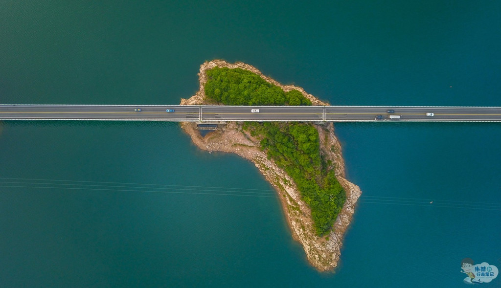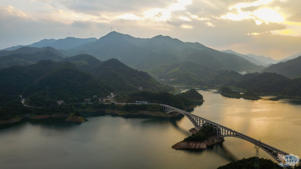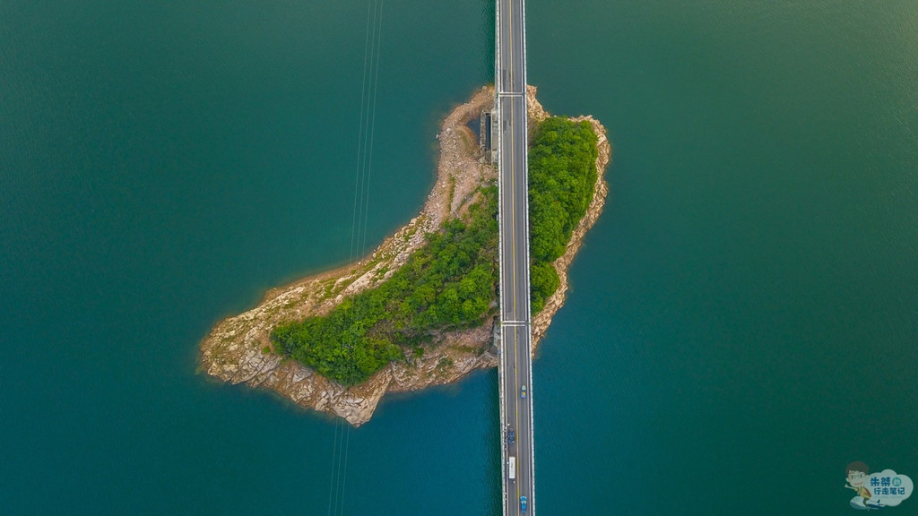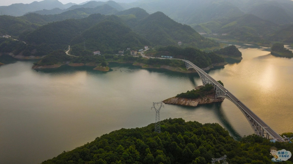 于1954年动工建设的梅山水库,位于史河上游,是一座以防洪、灌溉为主,兼有发电等综合效益的大型水利水电工程,就像是一颗璀璨的明珠,在新 中国 水利、电力发展史上异彩绽放,谱写了无数辉煌业绩。金桃大桥横跨梅山水库,水澄碧绿,如痴如画,让人流连忘返,航拍这一下画面更是令人叹为观止。