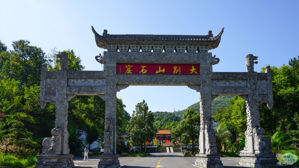 相传太平天国时期,起义军在这里活动频繁,而洪秀全家族之一的洪氏部落曾在此安营扎寨,故而又被当地老百姓称为“洪山寨”。穿过写有“大别山石窟”几个大字的巨大石牌坊,便可见洪山寨的山门,雕梁画栋、翘脚飞檐,远远望去仿若屹立于群山深处的古寺一般,庄严肃穆、气势恢宏。拾级而上,可见九龙庵的遗址,据说当年康熙皇帝曾到访至此。现在的禅寺已迁至山麓的翡翠湖畔。