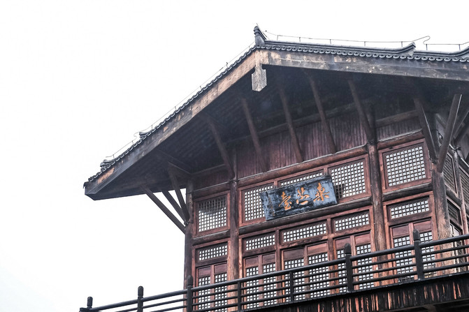 百间楼东起吊桥,北至栅桩桥,依河立楼,骑楼式长廊顺河蜿蜒逶迤,封火山墙、河埠石阶、木柱廊檐,连同水中倒影,好一幅江南枕水人家的画卷。