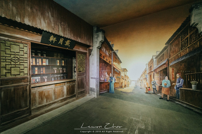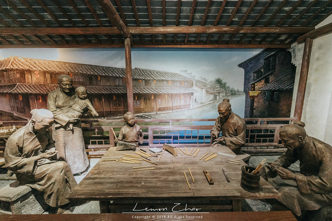 随后我们又去逛了逛善琏老街,这里商业林立,远近闻名的辣油小馄饨便隐匿其中,中式茶馆、西式咖啡馆、笔斋、丝斋应有尽有。在这里正好有一个展览馆正在展出,我们便进去看了一看。