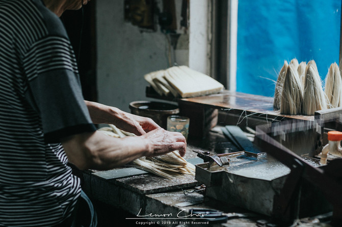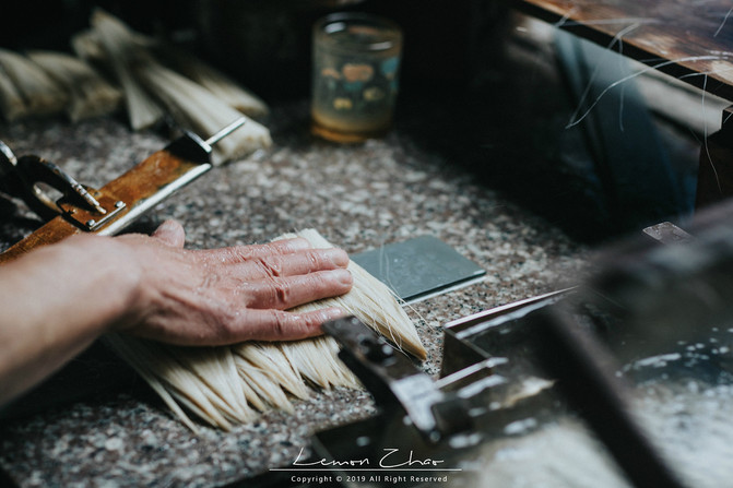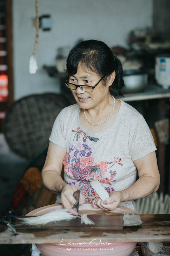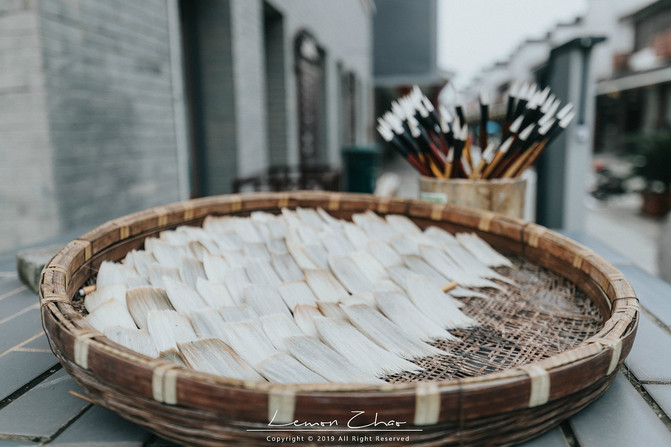 当然最有意思的是,我们遇到了一家做湖笔的作坊,出于好奇我们便走进去看了看。这是一家用自己家的房子改造的小作坊,一共七个人在这个不算亮堂的小作坊里辛勤劳作着。
