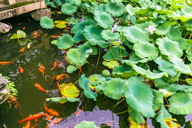 这里有一个非常大的池塘,夏日整个池塘都开满了荷花,接天莲叶无穷碧,映日荷花别样红,说的不正是眼前的这个场景吗?