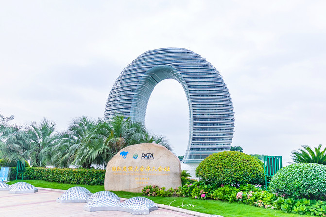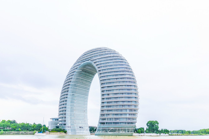 我们的第二站,就来到了月亮广场。“太湖生明月,奇观共欣赏”来自太湖水陆之间的月亮湾酒店,形状与弯月相似,状若指环,完全可以与迪拜的帆船酒店相媲美。酒店分为地上23层,地下两层,高101.2米,宽116米,几近全玉石整修,显示出了它的奢华和雍容。每到晚上,这里让人叹为观止的璀璨灯光又是另一番迷人景象,引人入胜,是中国顶级奢侈酒店的标杆。