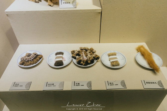 第三展厅,也是我最为喜欢的,那就是天工技艺甲天下,主要讲述湖笔的制作工艺及材料工具的展示。原来这一支小小的毛笔,要经过笔料、水盆、结头、蒲墩、装套、镶嵌、择笔、刻字共八大工序及120多道小工序。是不是难以想象,几块钱就能买到的毛笔,竟然需要这么复杂的工序?