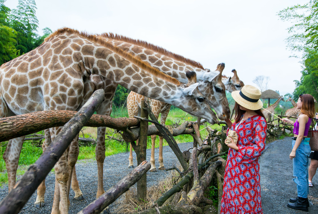 园区多种与长颈鹿互动的项目,长颈鹿互动餐厅,全景全明敞开式落地窗,方便长颈鹿把头从窗外探进来。周末带娃逛一逛,享受快乐的亲子时光。