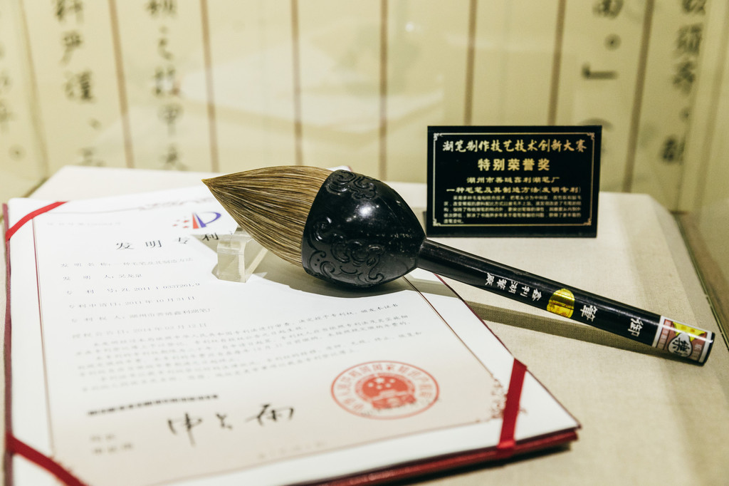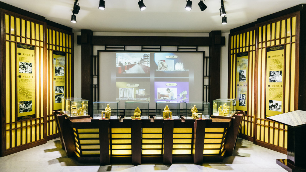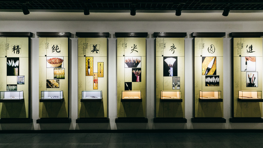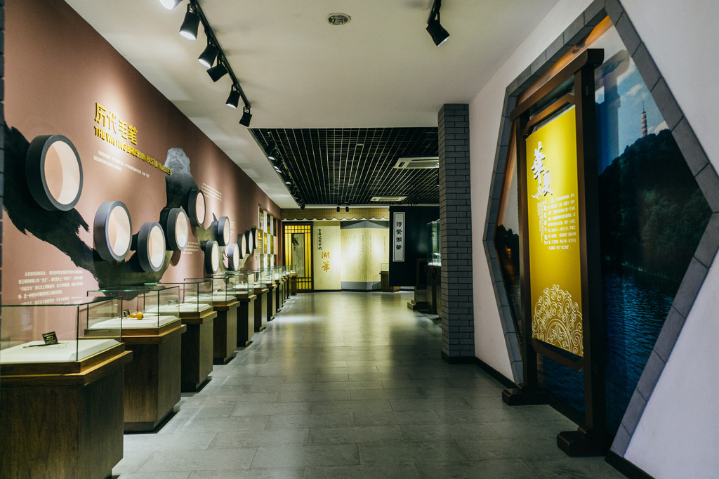 首先来到的是中国湖笔文化馆,展馆以湖笔文化为主线,围绕善琏湖笔历史、湖笔制作技艺、笔工传承、笔工社会习俗等核心内容,全面展示湖笔文化的丰富内涵。