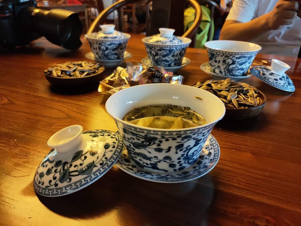 大家坐在茶室里,泡上一壶紫笋茶,漫漫地品尝着,细细地回味着,看着满山的翠竹,心情也随之清静,有着一分清雅的感觉,仿佛平时的繁华喧嚣已一去不回,匆忙的意识漫漫舒缓沉静下来,耳边隐隐飘来丝竹声声,如同天簌,那份静谧灵动让人感动,人在此终于找到了一种前所未有的平稳和恬静。