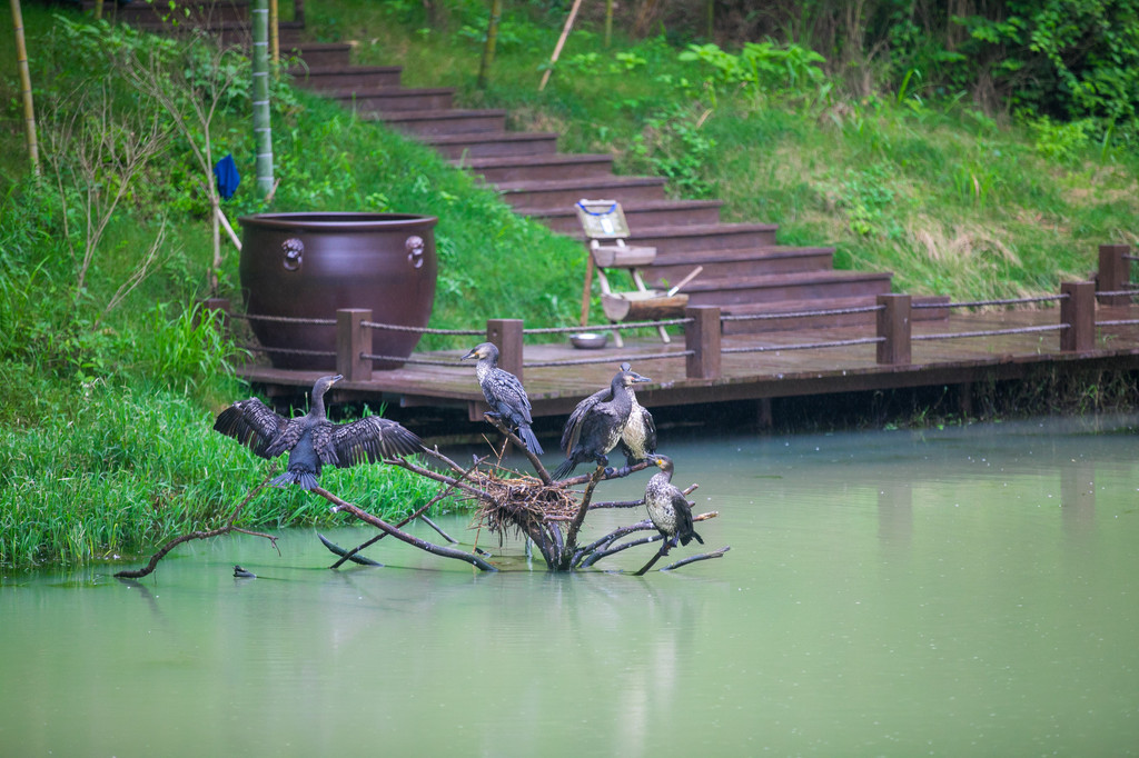 仙山湖风景区由仙山和仙湖两部分组成,仙湖就是泗安水库,而所谓的仙山显圣寺在湖边的山上,并不在景区内,入园后先经过一个索桥,然后去码头坐游船,湖面不小,船行了约20多分钟,经过水上森林景点,几只白鹭飞过,到达荷博园景点后弃船上岸,在这里乘坐景区公交车去古潮观鱼景点。