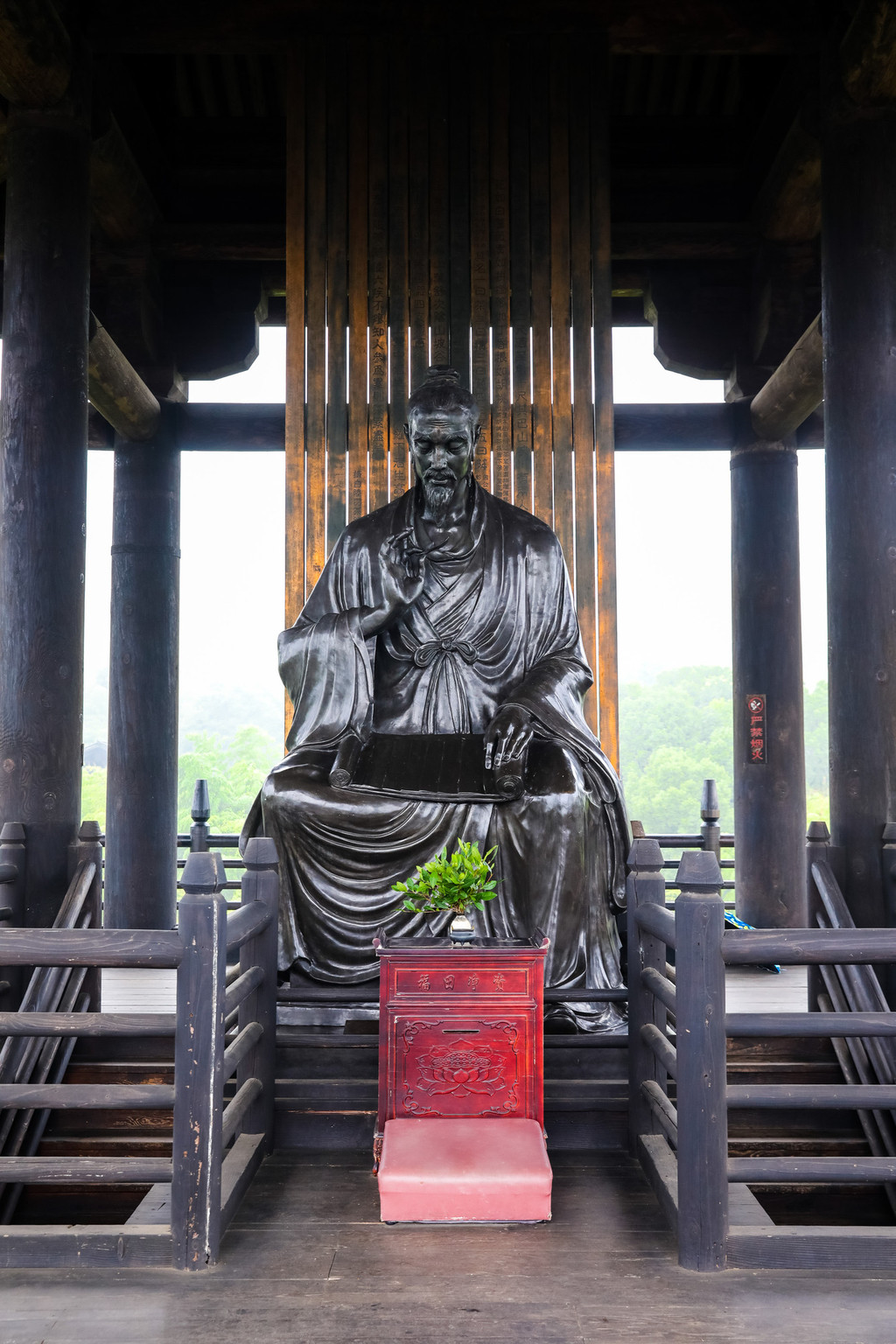 下了陆羽阁,走在全是木制的台阶上,有种皇家特享的豪华感觉。沿着长廊往前走,廊上放置一些铜像,仿佛穿越时空隧道,有置身于古代之感。长廊两边有千年摩崖石刻,足于证明大唐贡茶院悠久的历史。长廊的中间有一座吉祥寺,上层供奉文殊菩萨,下层展示宫廷茶宴场景。形象逼真,栩栩如生。长廊的东边介绍贡茶院制作紫笋茶的八道工序。