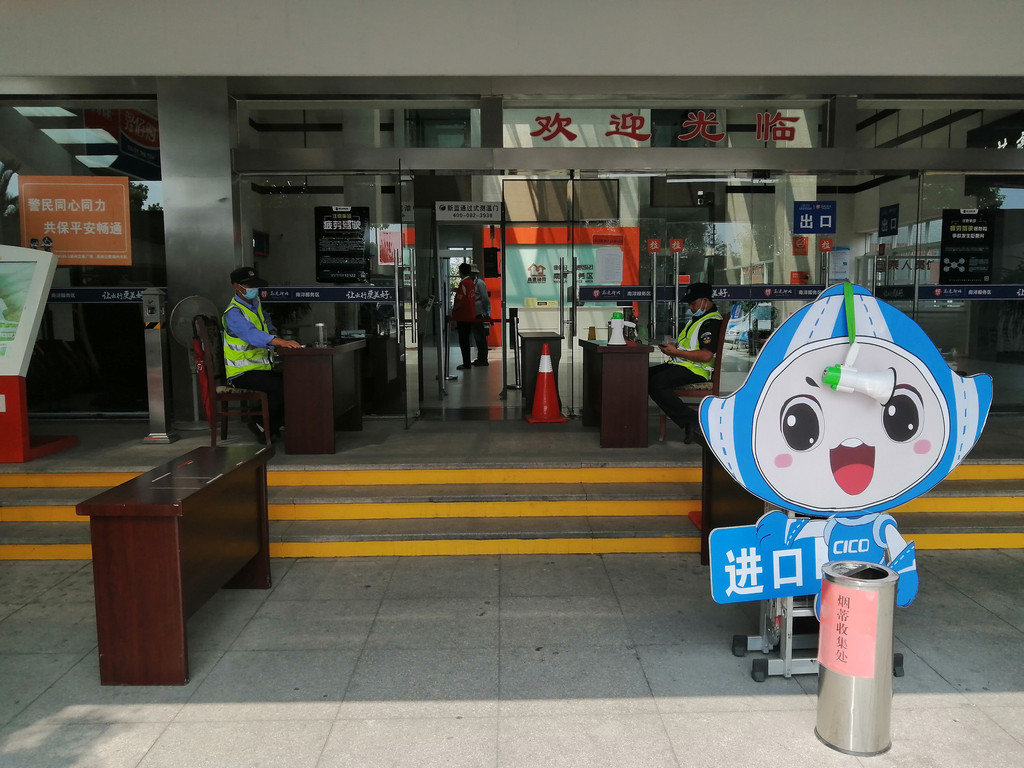 疫情期间,有的浙江服务区测量体温严格,戴口罩才能进入。
