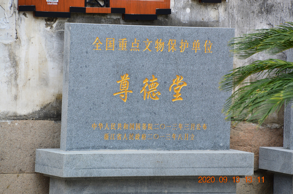 尊德堂,国务院2013年3月公布的第七批全国重点文物保护单位,近现代重要史迹及代表性建筑类,时代为1877年。尊德堂即国民党元老张静江的故居。尊德堂位于百间楼的南端,需凭南浔古镇的门票才能进入参观。