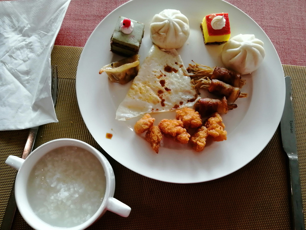 当晚入住南浔花园名都大酒店,挂牌五星级。高级园景双床房,490元(含双早)。花园式酒店,环境好,非常安静。距离南浔古镇驾车约2公里,出门游玩十分方便。硬件设施不错,客房面积大,卫生间干湿分离,还有大浴缸。餐厅面向河景,早餐品种多。稍遗憾的是,客房空调只能调节风量大小,不能调节温度,晚上感到有些偏冷。另外,客房是落地窗,窗户不能打开。