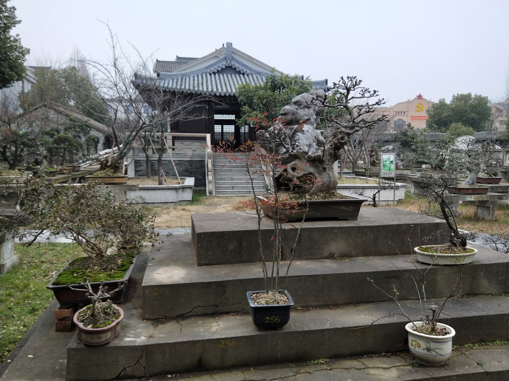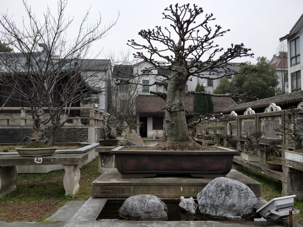 盆景园里有大型的树桩盆景,不过大多数盆景都掉落了叶子,我们只能看到树桩和枝干,难免美中不足。反正我们对于盆景也没有什么研究,倒也没有什么遗憾。