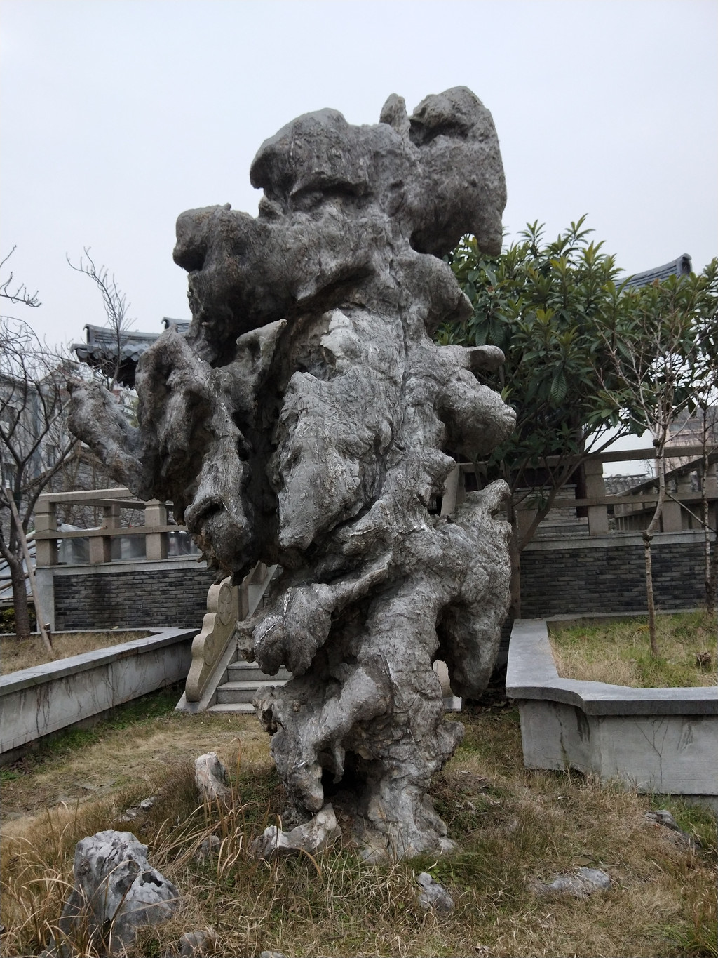 一旁还有块灵壁石,倒有些与望鹊楼旁的那块有些遥相呼应的意思,这一块名叫“龙凤呈祥”,我喜庆的寓意。