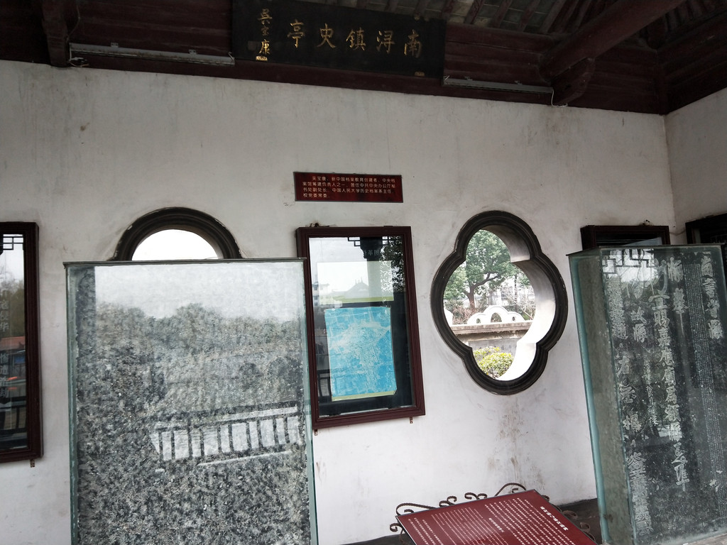 往前走是碑廊,镇史亭里保存着一块宋代石碑,碑上记载着南浔建镇历史,不过字迹已经很模糊,几乎看不大清。还有明代嘉应庙占地碑和其他记载南浔重大历史史料的石碑,如果对碑文有兴趣的游客,倒是可以在这里了解南浔从村落到江浙雄镇的演变。
