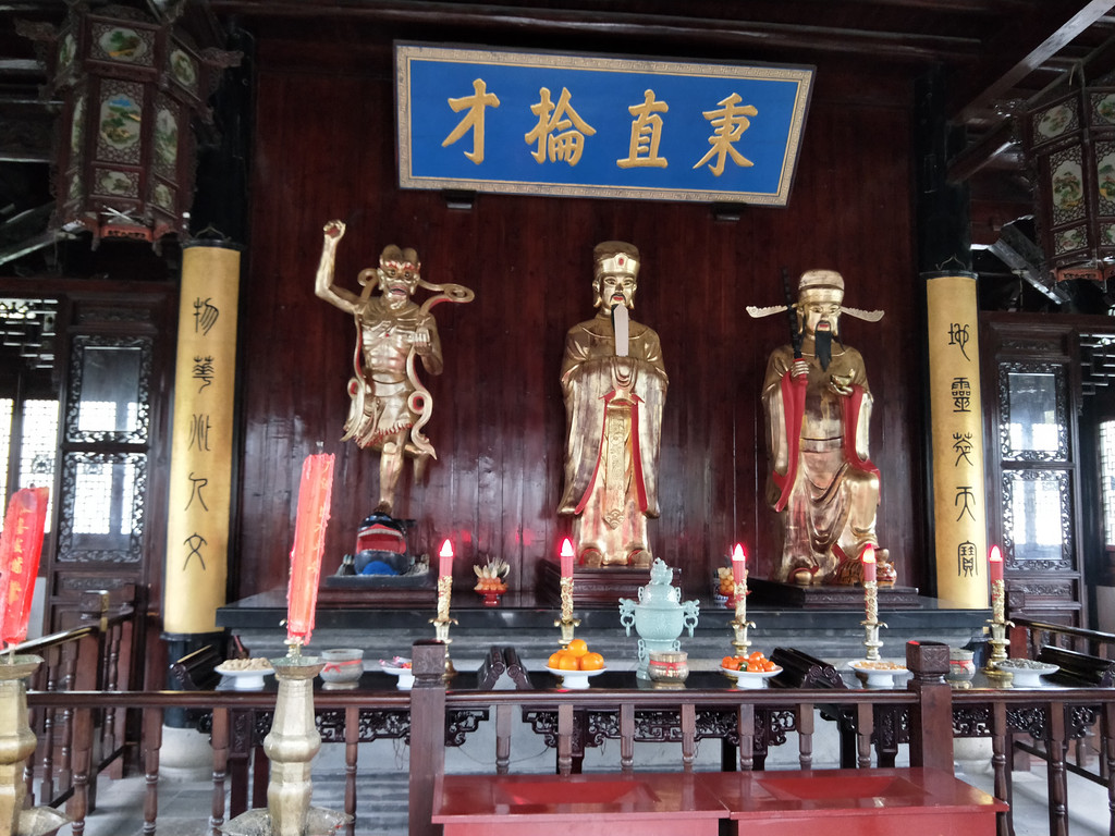 文昌阁供奉玄坛财神、文昌梓潼帝君和魁星,据说原先是分三层分别供奉的,现在把他们都供奉到了一起。