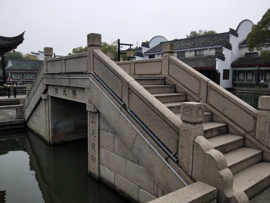 望鹊楼前有一座状元桥,其实也只是一座不算太起眼的小桥,不过拱形的桥洞两侧,还刻了副对联,有一些被没在水下了。湖州产的状元是挺多的,不知道南浔出过几个状元。《南浔镇志》里曾说“南浔镇旧有状元坊”,说的似乎就是南宋绍熙年间的状元张定。