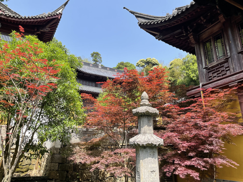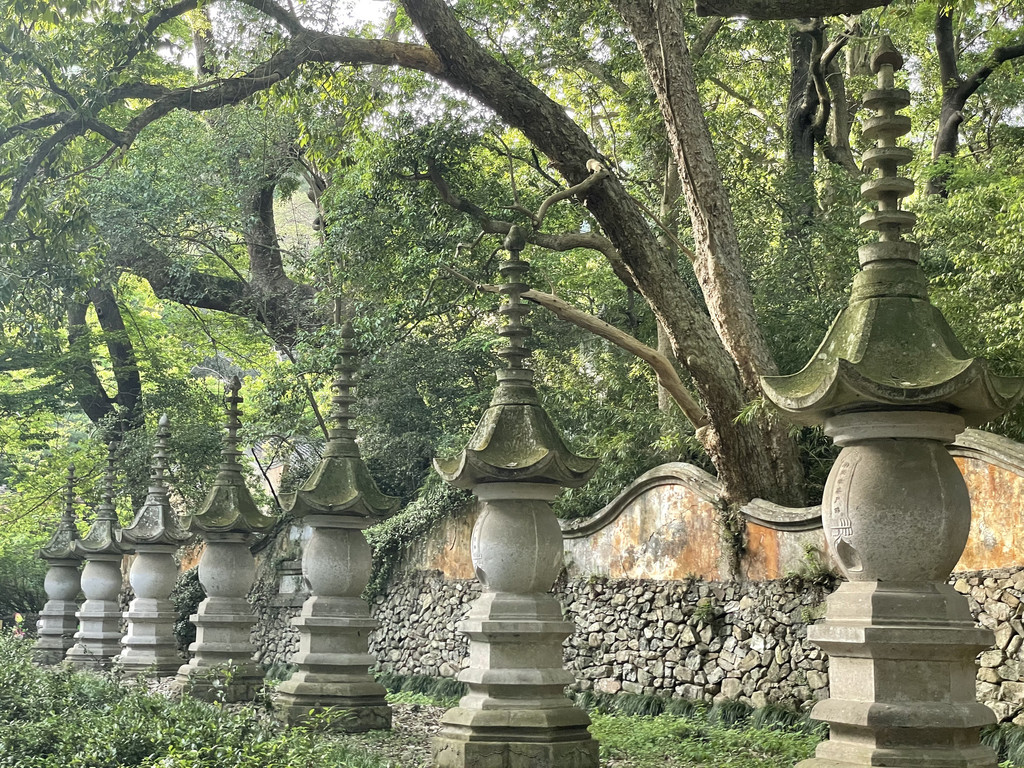 返回后国清寺已经闭门,在寺外逛逛也是有惊喜。可以看到七佛塔、隋塔。