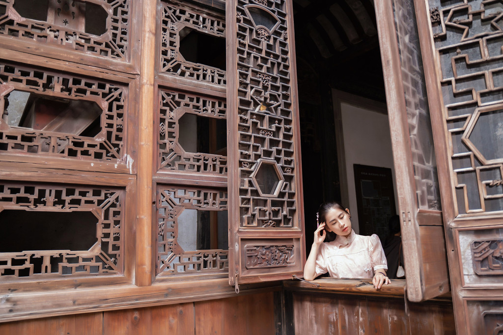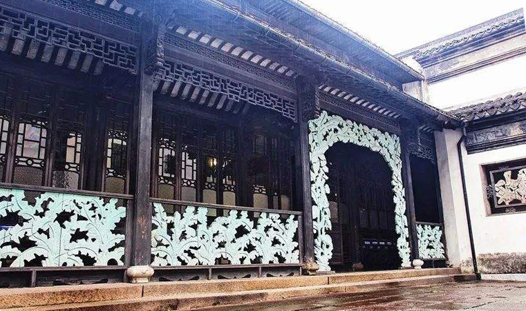 这里有三大雕刻,门口是徽派建筑中的砖雕,两边还有十分繁复的石雕,大厅旁边的每一扇木门多是一件艺术品,来自浙江东阳的木雕,上面刻有精美的雕花和《西厢记》的故事,时至今日,上面的人物轮廓依旧清晰可见。