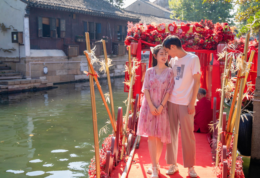 这样别开生面的“水上婚礼”是南浔古镇特有的水乡文化,现今来游览,还是能看到演员队伍为游客展示的“水上婚礼”这个活动,让现在的年青男女感受一次传统水乡婚礼的魅力。
