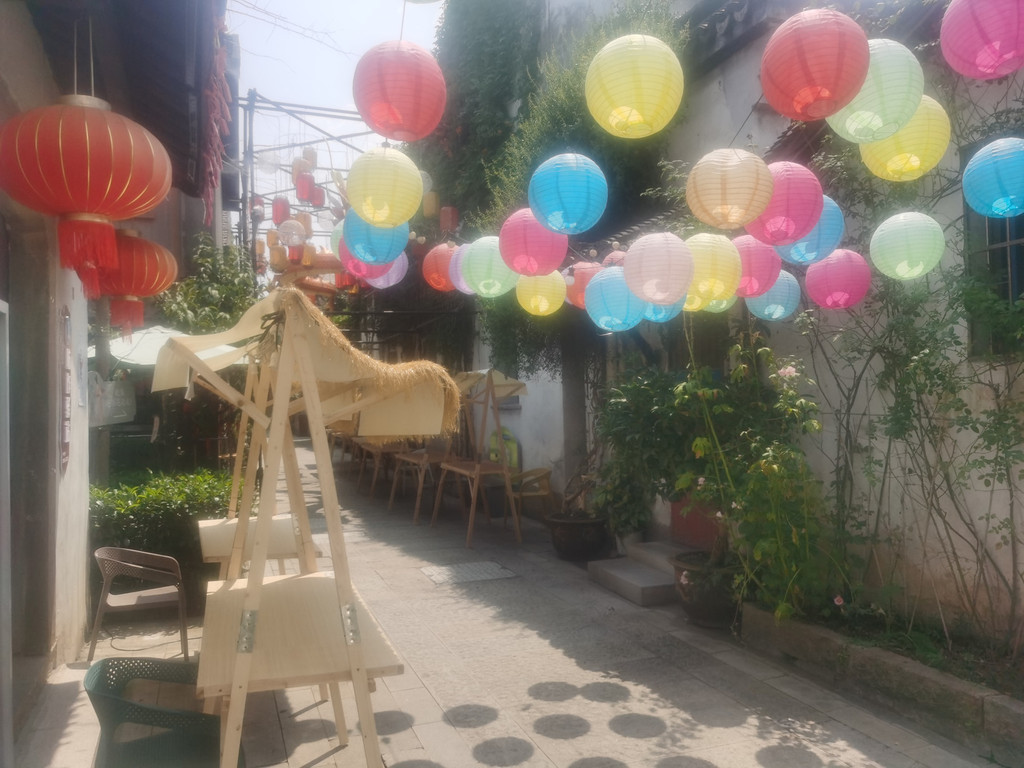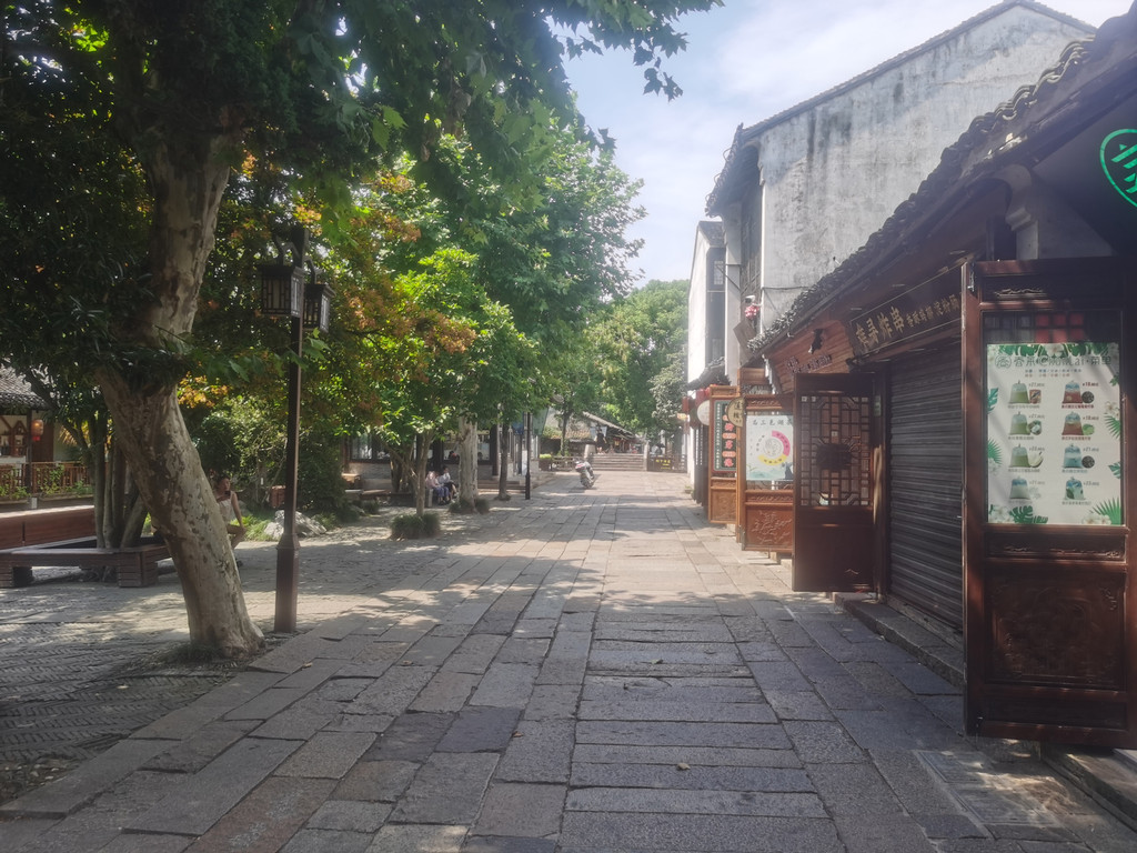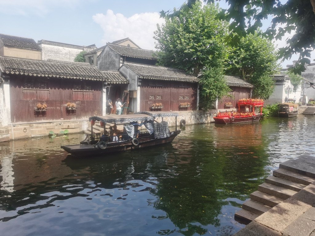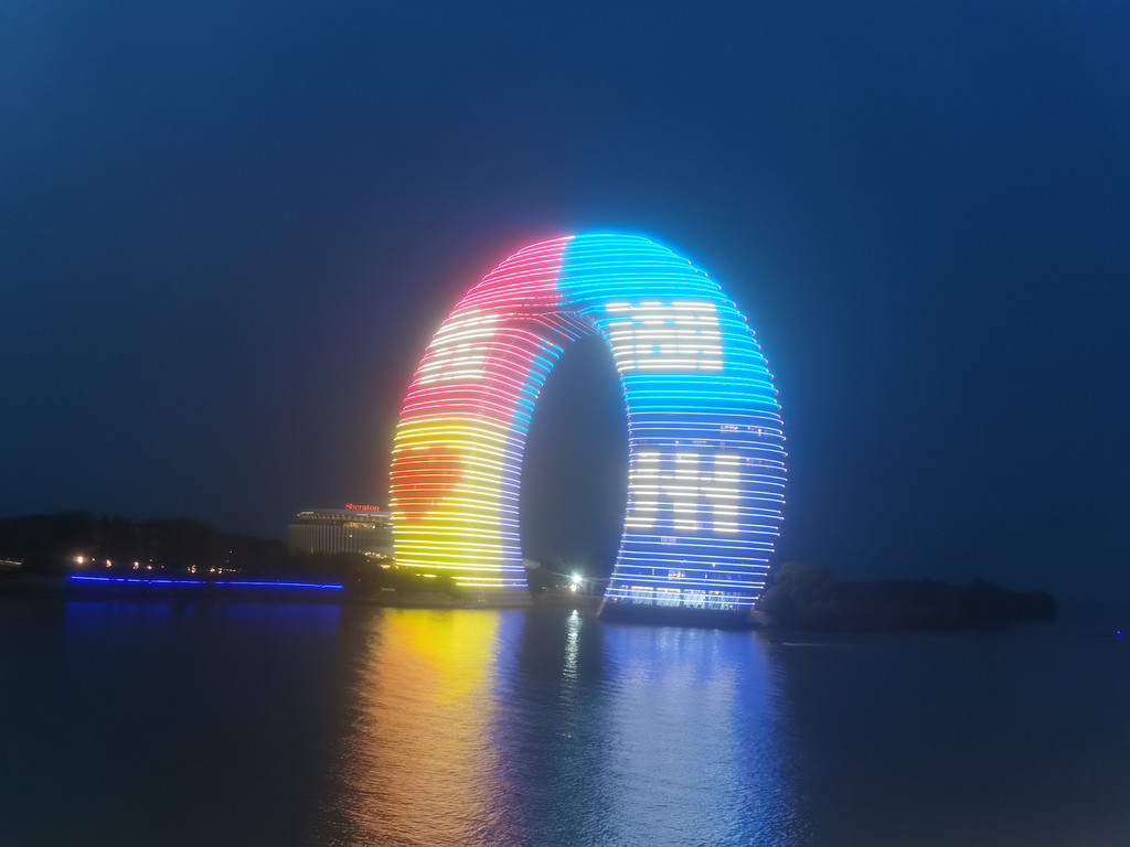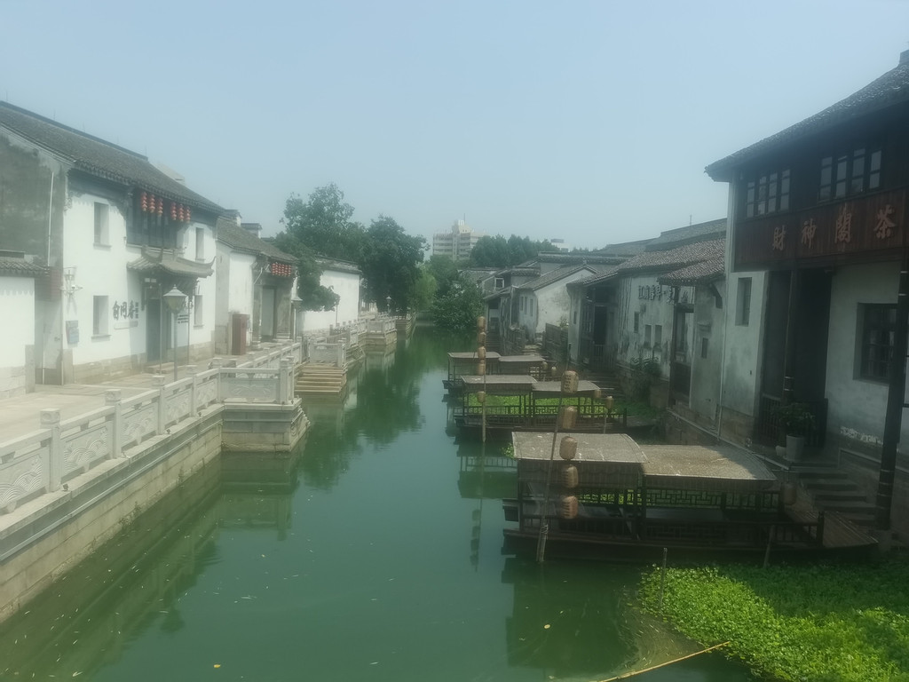 第四天:早上退房,为节约时间,客栈门口打的到南浔汽车站,坐快速大巴一个小时左右到达湖州旅游集散中心。坐公交到湖州老街附近,看到浙东大酒店,于是缴费定了两天。酒店休息一下,到酒店对面餐厅吃本地菜。出来走到湖州老街里面的状元街和小西溪古街。的确是有一条小溪流过这里。此次来湖州,不仅仅是许多人提及这里是个适合闲居的城市,更是“端砚湖笔”说法中,“湖笔”所在的地方。中午高温炙烤,只能回酒店休息到下午四点多。下午出来,公交坐到湖州新的行政中心,新区规划整整齐齐。发现可以扫码骑共享电动车,由于是第一次骑电动车,请教了旁边的人,自己居然也骑得有模有样,很有收获。逛完新区,放好电动车,打的到太湖喜来登酒店度假区看地标建筑“马桶盖酒店”,再打的到太湖古镇看夜景、走古镇、看水景表演和烟花表演。这里竟然有打铁花表演,从前只是电视上看过,今天算是目睹真容了。太湖古镇熙熙攘攘,食肆食客众多,算得上是热闹非凡了。湖州不大,但也的确是个有清静有热闹的地方。