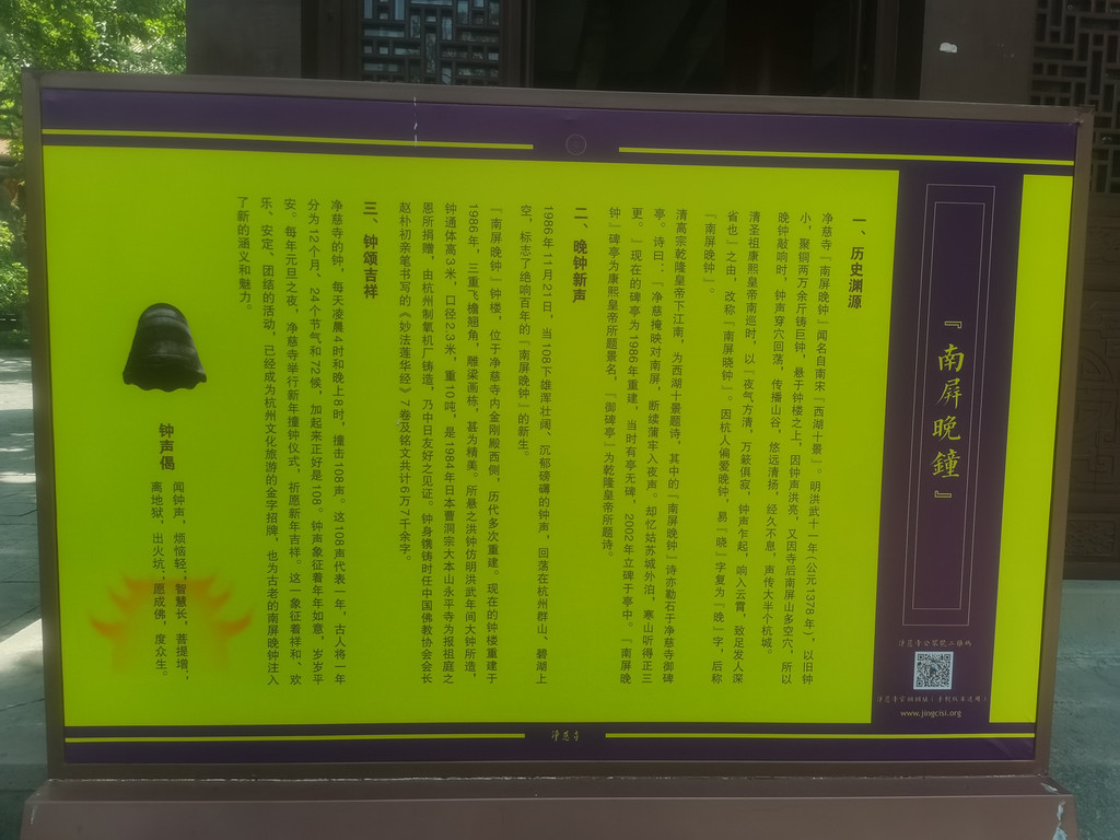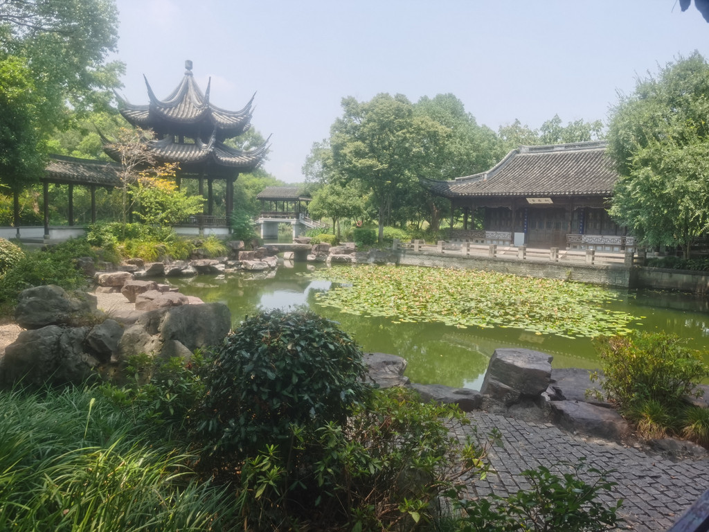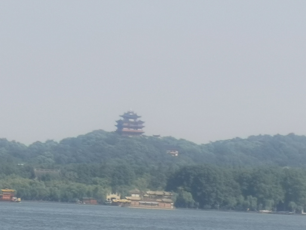 第六天:早上9点后出发,地铁到吴山广场,骑共享单车沿西湖顺时针骑到了杨公堤,环湖骑了少一半,回头骑到到净慈寺,这就是著名的“南屏晚钟”所在的的寺庙,先认真的拜佛,再吃寺中10元一份的斋饭,告诉佛祖,我应该还是虔诚的。出来踩共享单车到柳浪闻莺,不知不觉已骑到河坊街,花鸟城。后来才知道,有人说今天中午是杭州有史以来最热的一天。天气太热了,就钻进附近杭州博物馆乘凉。下午天气稍凉,就走到附近的步行街文化区域,清河坊,南宋御街,中山路鼓楼。鼓楼旁边的牛肉汤煎包,味道的确不错。出来骑单车到西湖断桥,人满为患,就继续沿湖边骑行,一直到苏小小墓入口进入白堤,放下单车步行走到断桥,竟然大风突起,河边柳树枝条大幅度的摇摆,甚至有些恐怖,紧接着下起了小雨,天气顿时凉爽了。看来今天天气热是有缘由的:雨前太闷热了。好不容易凉快了,夜色也刚好降临,雨中打伞坐在湖边椅子上,欣赏夜晚的西湖,心里颇为宁静。