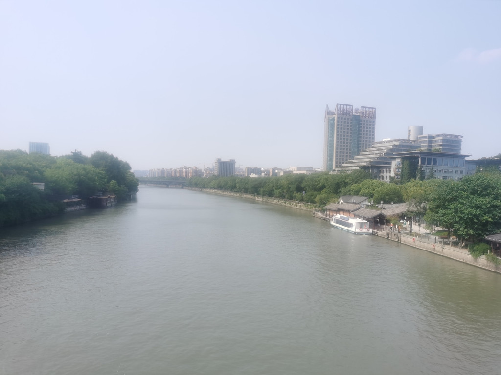 第二天:早上骑单车到凤起路地铁站,坐地铁到西溪湿地,天热懒得走路,就坐湿地观光车穿过湿地区域,到高庄,看了高庄的园子后,坐地铁回到武林广场。隆重推荐:武林广场码头坐2元观光船沿京杭大运河观光,的确是性价比极高的选择。运河沿途风景颇佳,到拱宸桥下船,看运河博物馆,出来单车转公交和地铁到杭州市政府,走到杭州城市阳台,这是杭州新的城区,是看钱塘江对面的许多地标建筑的最佳地点,出来再坐地铁过江,骑共享单车走江滨观光带,傍晚时分,月色朦胧,树影婆娑,人影晃动,是有苏杭天堂的味道。坐地铁回到酒店附近的武林夜市,吃98元一碗的蟹黄面,吃完了,心里安慰自己一下:味道也还是可以的呀。