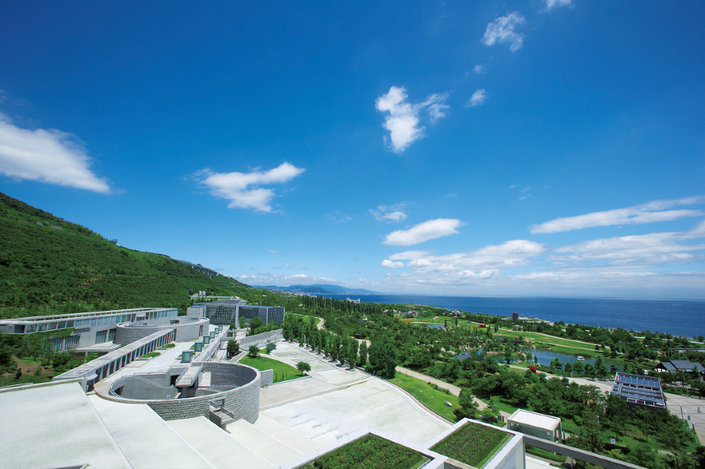 淡路格兰日航大酒店在建筑家安藤忠雄设计的【淡路梦舞台】之中。淡路梦舞台是人与自然的交流为主题的综合设施,安藤建筑和自然的美妙结合让人赞不绝口。淡路梦舞台其中还包含了奇迹之星植物馆、百段苑、国际会议场、Promenade花园、野外剧场等等人气设施。