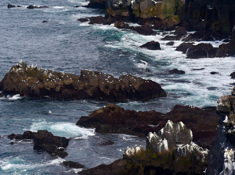 鬼斧神工的怪石海蚀柱,悬崖下栖息着成群冰岛国鸟海鹦,打鸟人的天堂。