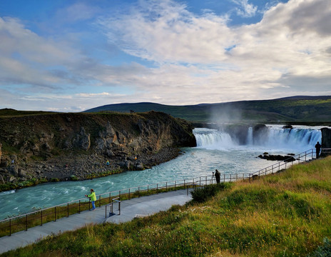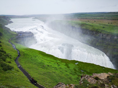 冰岛名气最大的瀑布之一。上下两层丰沛而湍急的水流沿着岩壁浩浩荡荡汇入峡谷。近距离站在瀑布前可以直观感受它的气势。