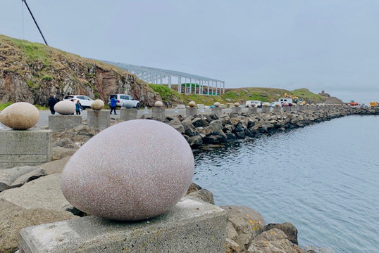 宁静的渔村小镇,19世纪成为丹麦贸易港。冰岛摄影师Sigur?ur Gu?mundsson的艺术展品“蛋的快乐湾”, 34个大型花岗岩蛋代表了 34种鸟类的蛋。