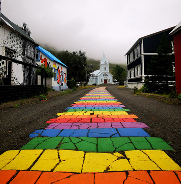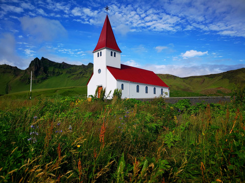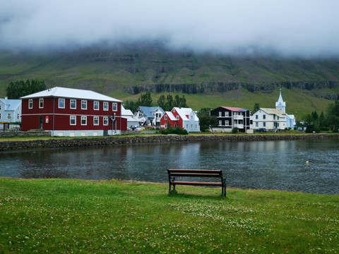 东部最美小镇,一号环岛公路向东30公里左右的峡湾里。群山环绕、色彩纷呈的小木屋、彩虹路和路尽头小清新蓝教堂(Blue Church)是很多明信片和打卡圣地。