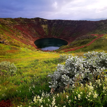 黄金圈除了三大经典景点外还有许多小众惊喜。在辛格维利尔国家公园与Haukadalur地热山谷之间的凯瑞斯火山口就是之一。