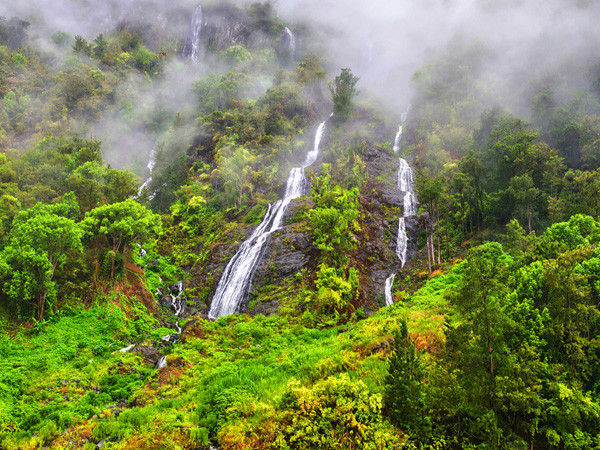 景观特色为多条瀑布汇聚成一条,层层叠叠,长水帘波折起伏,从山崖直泻而下,点缀在翠绿山体中,如同新娘的长长头纱,尤其是在雨天,水量充足,景色更为壮观。作为留尼汪岛必打卡景点之一,是游客驻足合影的经典场景。
