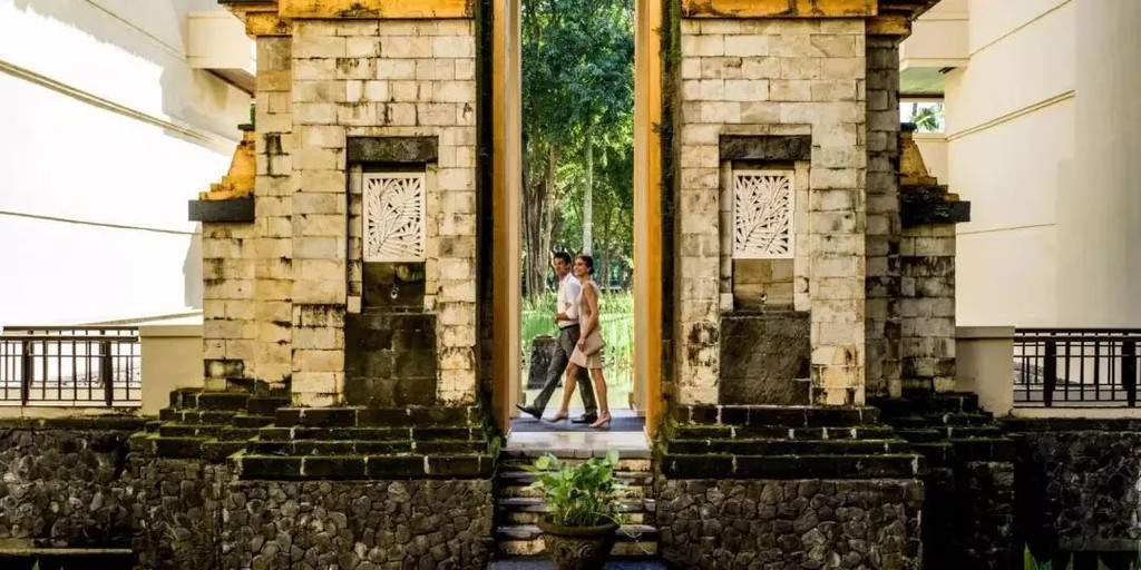 除了绵延的白色沙滩、景观水池、蜿蜒的礁湖之外,酒店还特别地将巴厘岛传统的建筑元素融入其中。