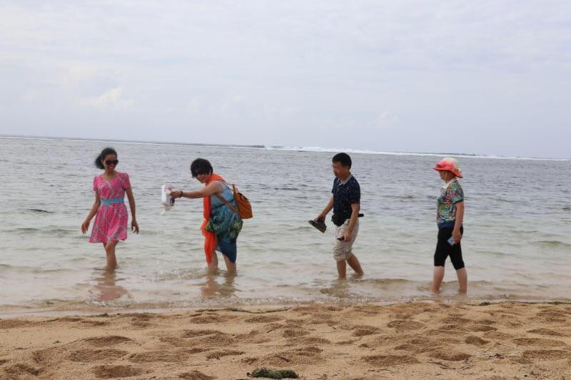 飞机降落在巴厘岛机场,舱门开启的瞬间,热带独有的气息便涌了过来——湿润的海风裹着咸涩,路边绿植疯长如泼墨,空气中飘着若有似无的香料味,像一双手轻轻把我拉入全新的世界。与大部队会合后,我们奔向努沙杜瓦的海边酒店。椰林环抱的客房里,推开窗就听见海浪轻拍沙滩,那声音像温柔的絮语,瞬间拂去了旅途的疲惫。