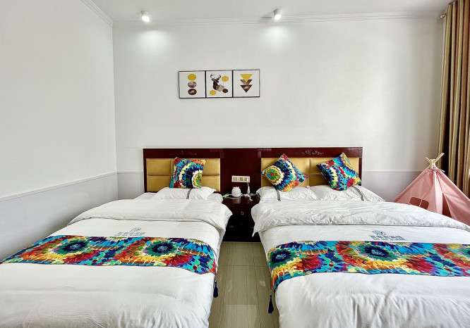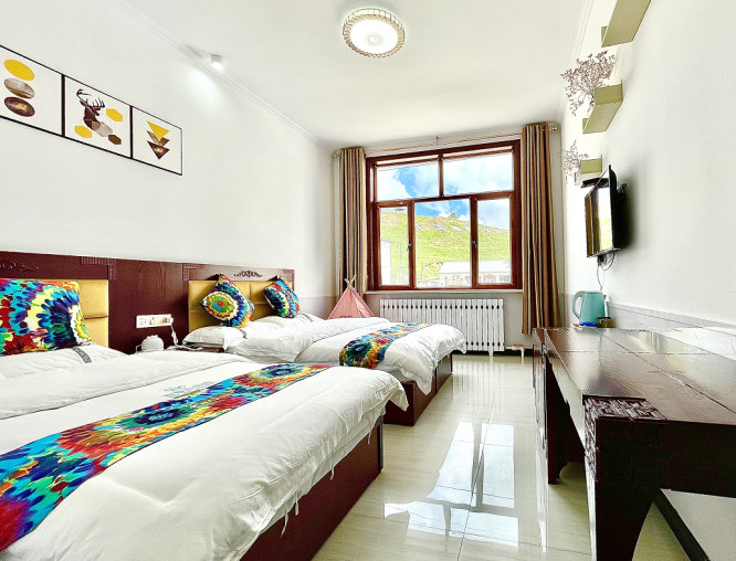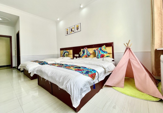 乌兰布统草原摄影基地归心客栈民宿,是一个接地气的民宿,吃住玩全都有,而且凉爽宜人,可以接待游客50人左右住宿,客房有大床房,双人床,民宿设计时尚,装修也是简洁大气,床品都是纯棉质地,盖着很舒服,干净程度堪比星级酒店。