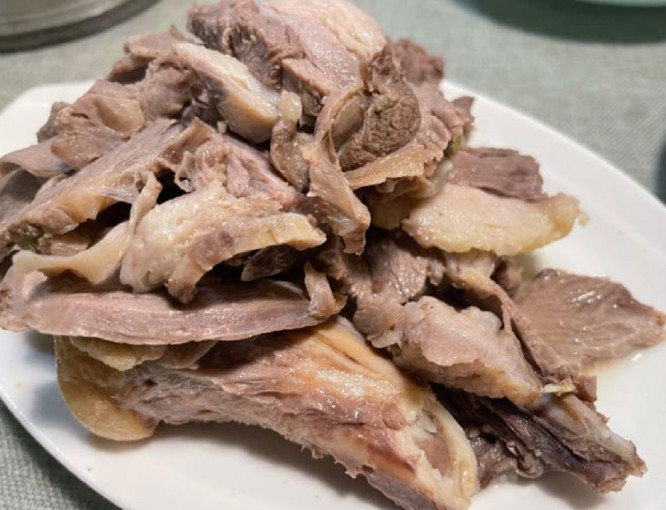 别具一格的农家特色的手把肉,羔羊肉带着羊骨直接下锅用白水煮,不加什么生抽老抽调色调味,吃的就是羊肉本身的原生态的味道。