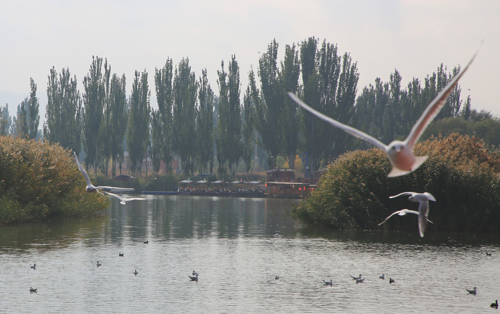 十月份,在鸟迁徙之前,我们走进了有塞外明珠美誉的乌梁素海,也是地球同一纬度最大的湿地。我们以后会发现,在北京、内蒙、青海、西藏、新疆许多地区,湖泊都是以海命名的。实际上只是湖泊,由于湖泊广阔,象极了大海,蒙古语中叫做海,就象北京的什刹海不是海、西藏的玛旁雍措、纳木措是天湖一样,只是叫法不同而已。
